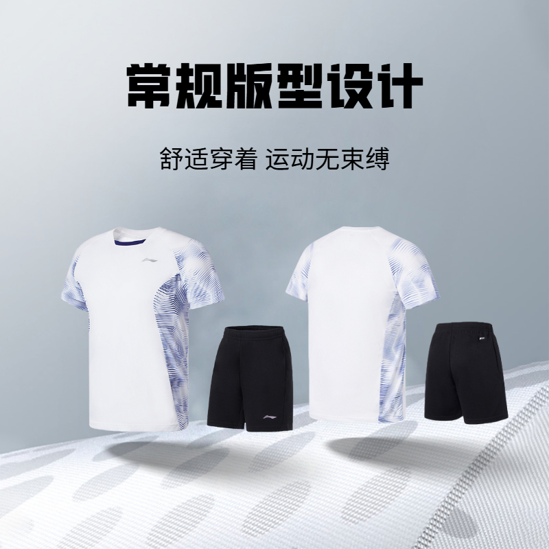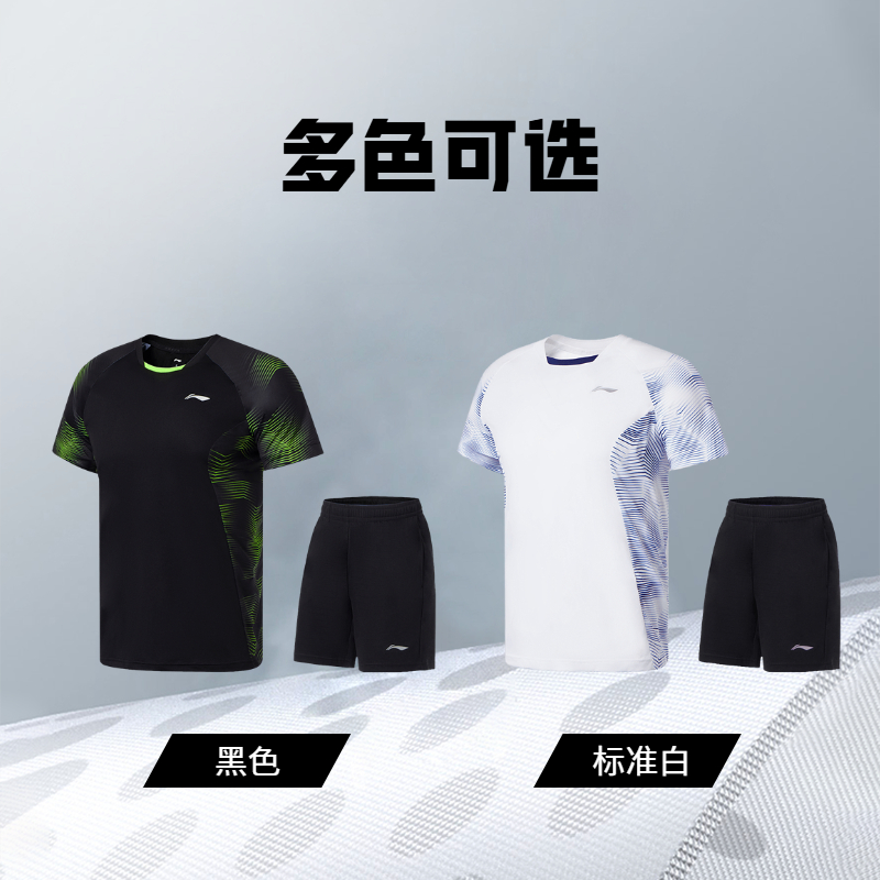 短裤 情侣针织速干运动服短袖 男女新款 李宁羽毛球比赛服训练套装