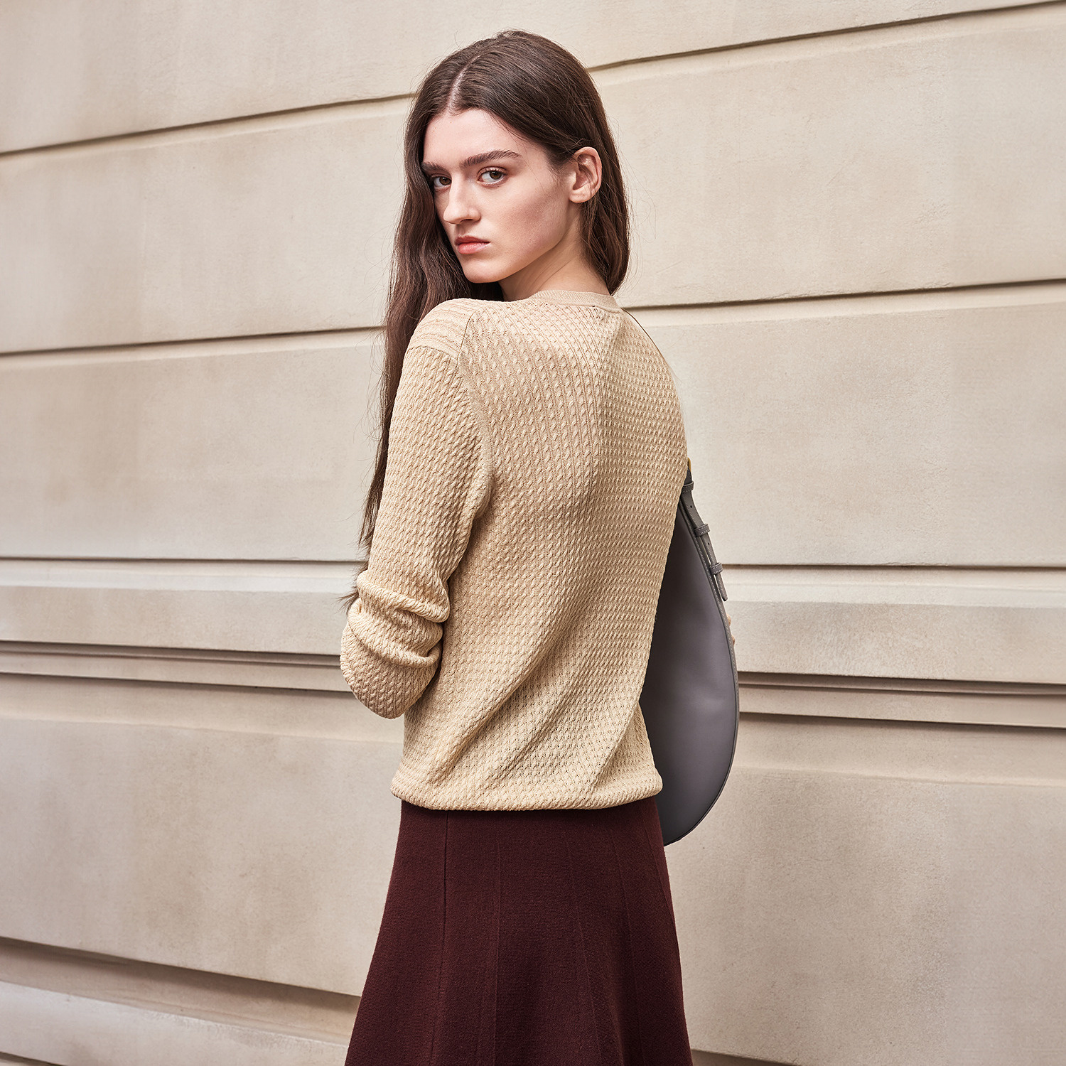 百搭通勤设计感高级立体绞花肌理女上衣针织衫 BCBG新款 早秋时尚