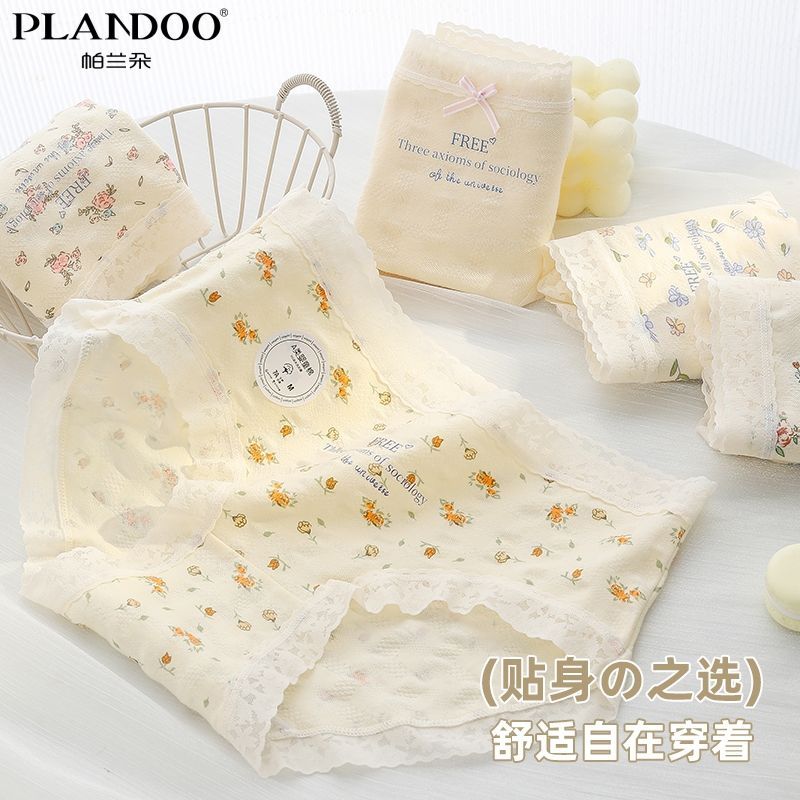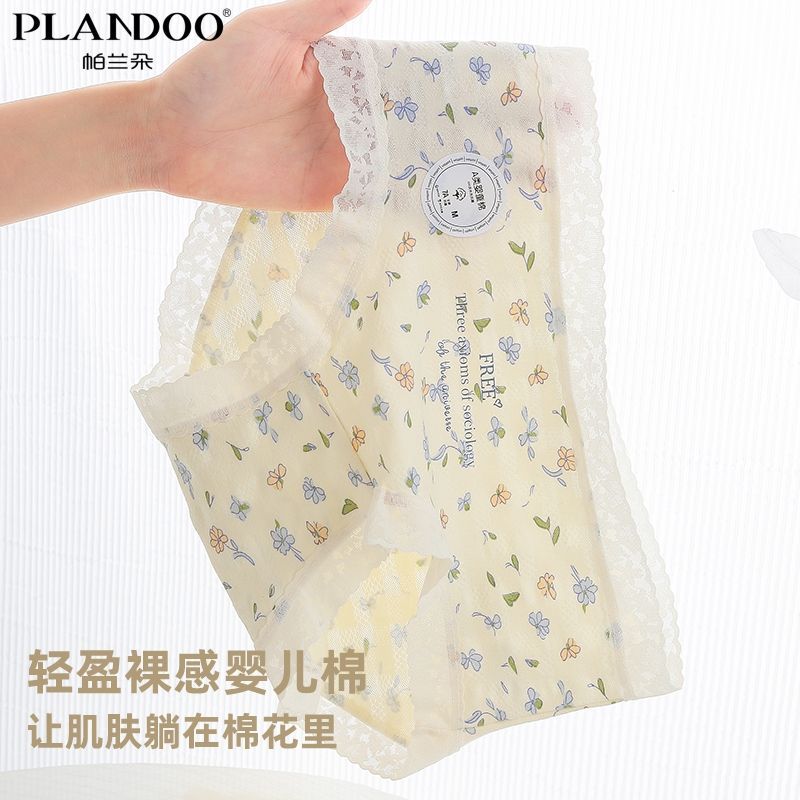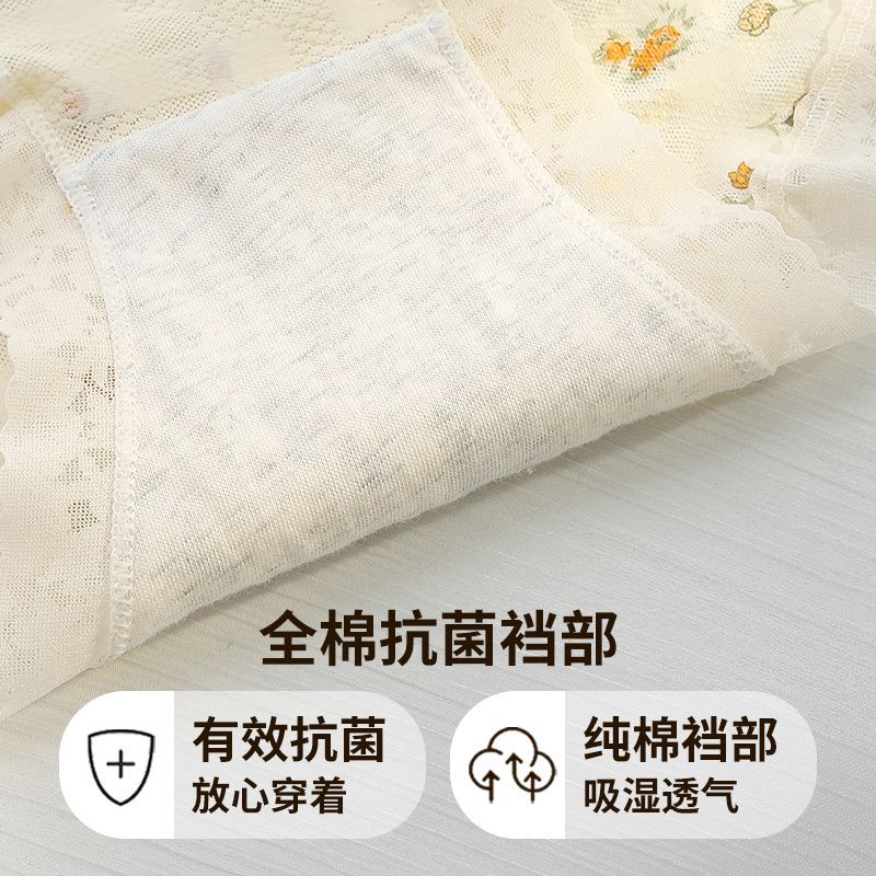 帕兰朵田园风小碎花纯棉女生内裤 腿全棉裆 精致玫瑰印花高弹蕾丝裤