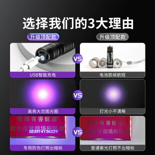 365紫光灯紫外线伪灯专用验中华烟酒笔照烟仪器识别照钱验钞机鉴定蓝光手电筒看烟码 神器玉石翡翠鉴定专用