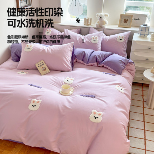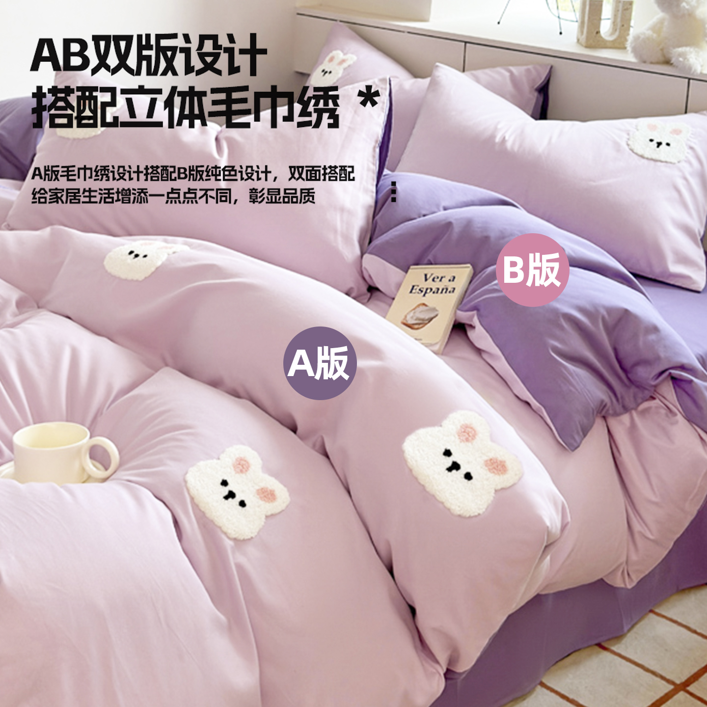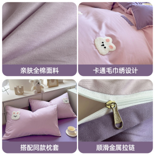 A类全棉毛巾绣四件套纯棉学生宿舍被套床单笠三件套ins风床上用品