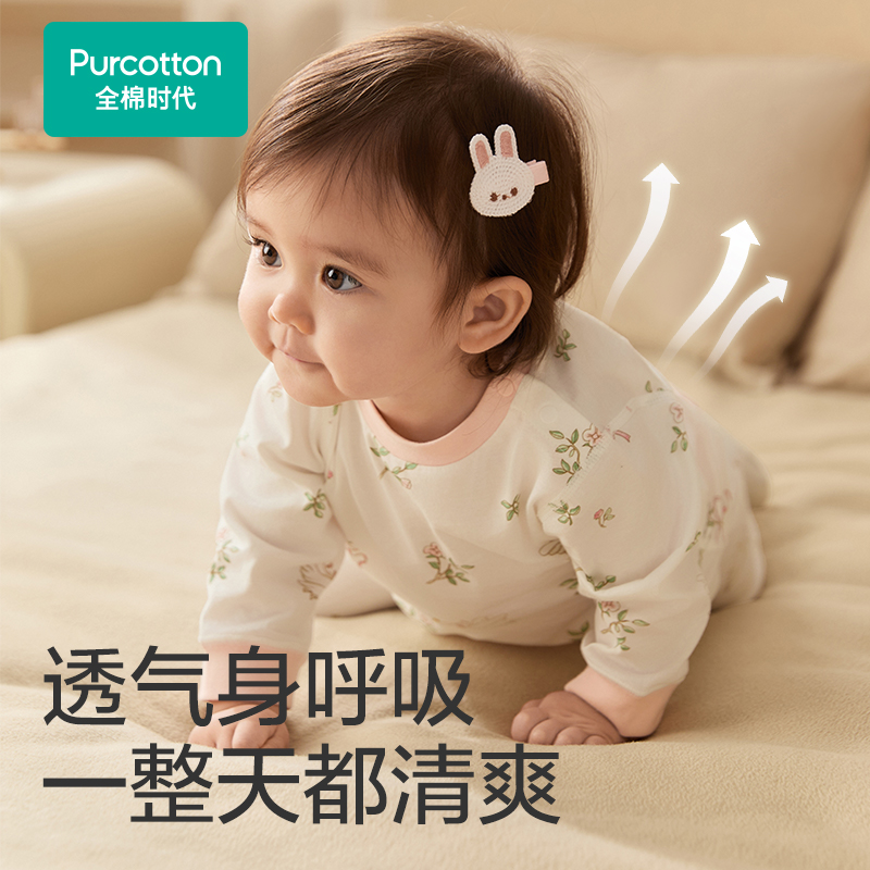秋冬新款 护肚套装 婴儿新生儿针织高腰护肚套装 全棉时代婴儿套装