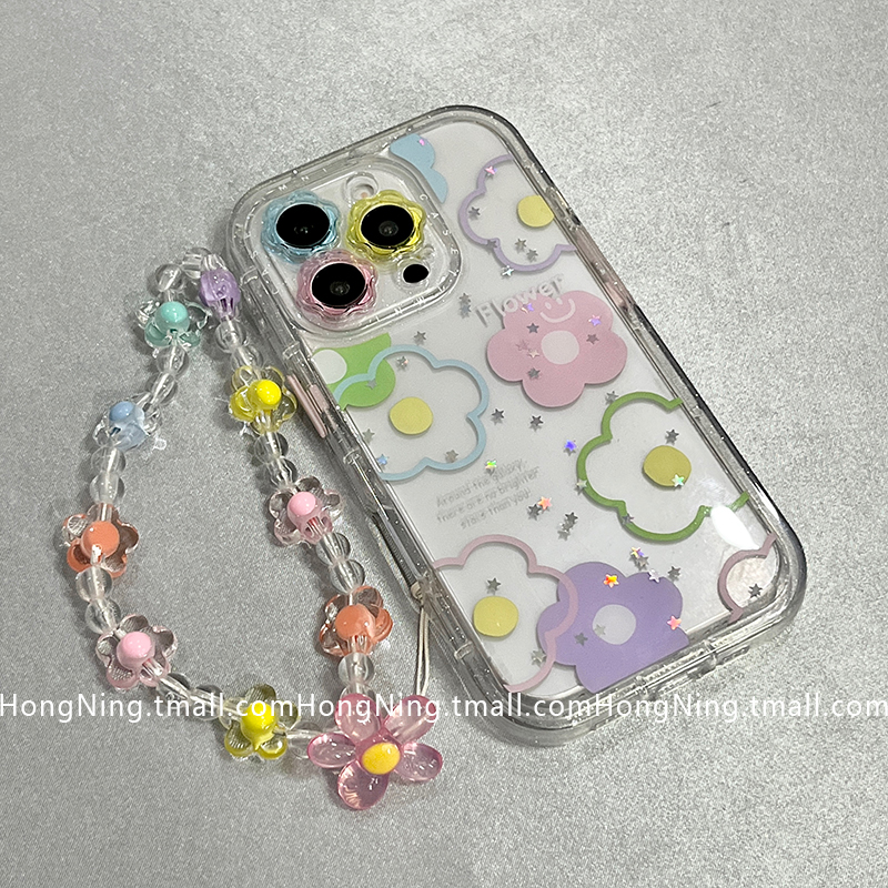 小香风ins花朵涂鸦带链条适用苹果16ProMax手机壳iPhone13新款 14防摔15PRO硅胶轻奢情侣全包套 16pro小众女款