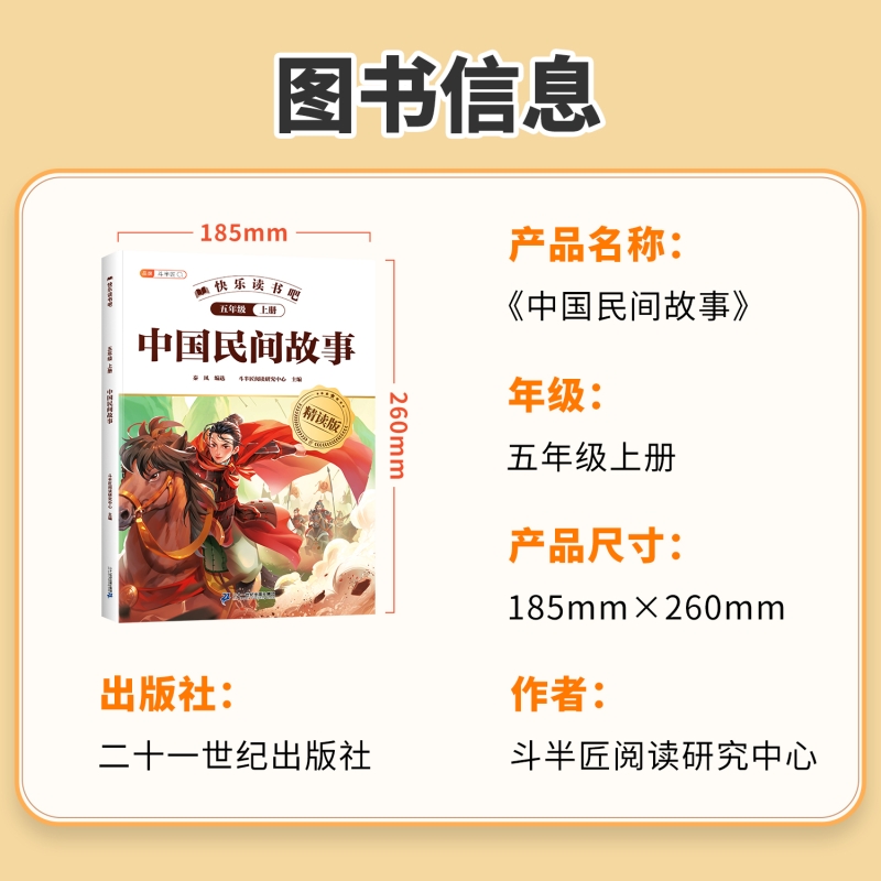 中国民间故事五年级上册快乐读书吧必读课外书小学生语文同步课本精读版 5上儿童文学系列精选名著读物预复习课外阅读故事书 人教版