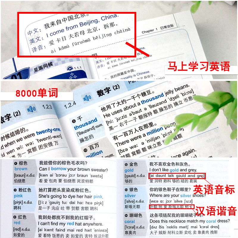 全2册 8000英语单词自学英语单词速成学习神器零基础会中文就会说英文日常交际英语对话书籍成人初三四五六年级wl 英语口语马上说