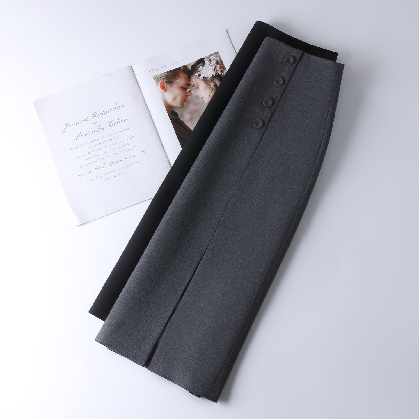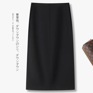 娅丽达松紧腰羊毛醋酸半身裙女秋冬2025新款 黑色裙子开叉直筒长裙