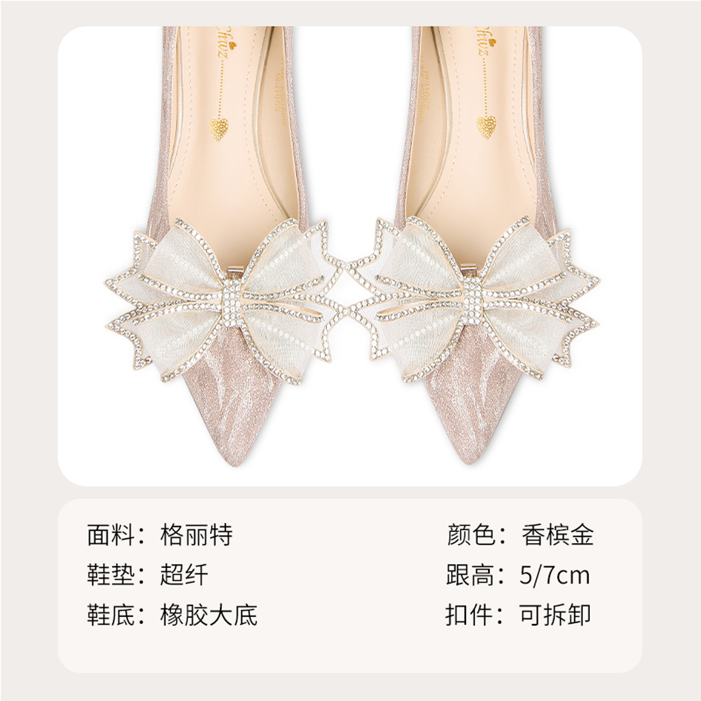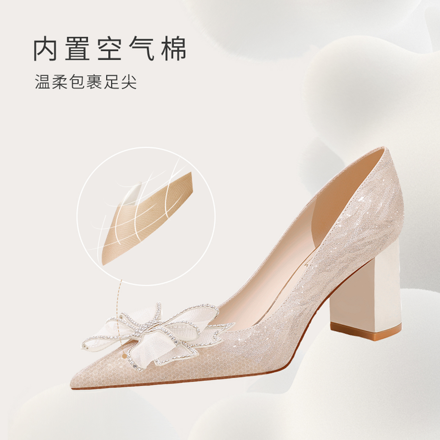 禾秀主婚纱两穿舒适不累脚新娘鞋 爱丽拉粗跟香槟色婚鞋 女2025新款