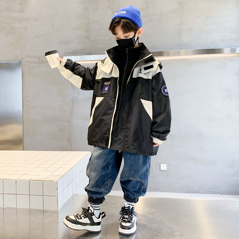 上衣中大童风衣洋气冲锋衣潮 儿童装 男童夹棉外套春秋冬款 2025新款