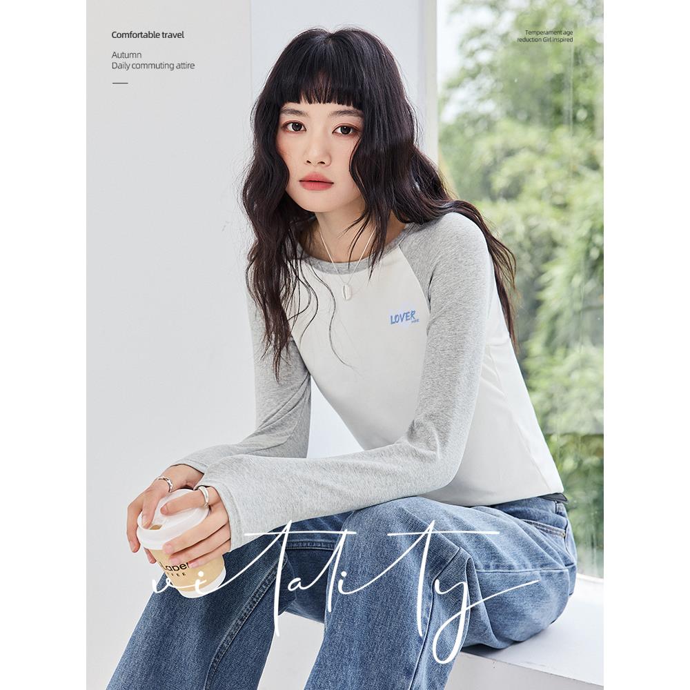 内搭撞色宽松上衣女 春秋休闲打底衫 唐狮集团MH长袖 t恤女2025新款