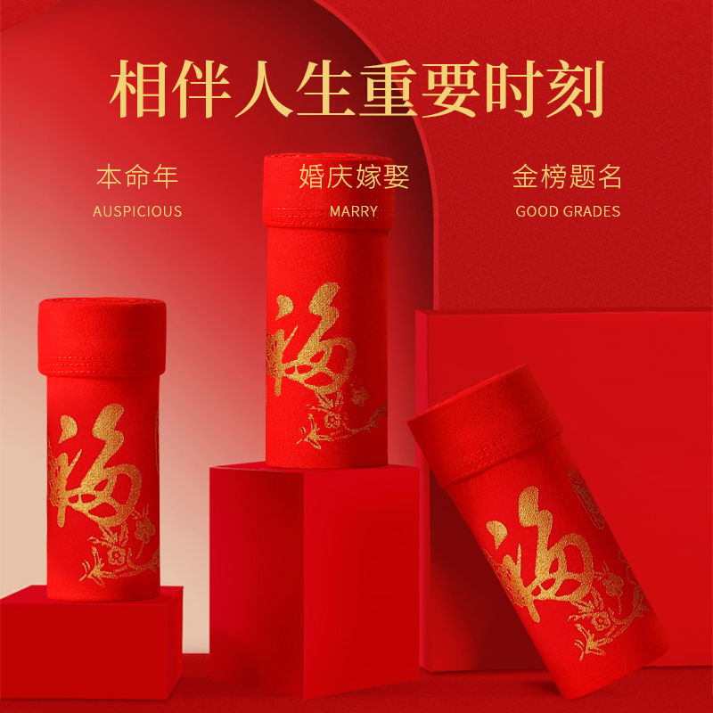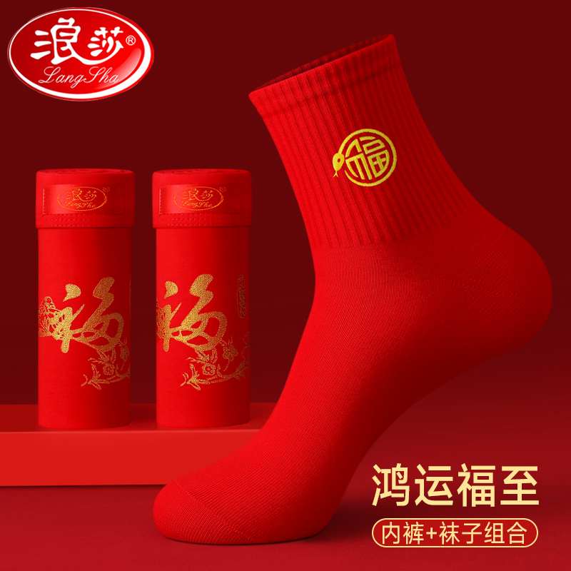 袜子套装 大红色纯棉过年礼物属蛇四角短裤 男士 浪莎蛇年本命年内裤