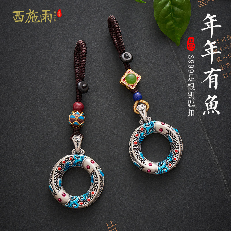 钥匙扣黄色朱砂空心葫芦转运出入平安挂件生肖高档纯黄钥匙扣圈环