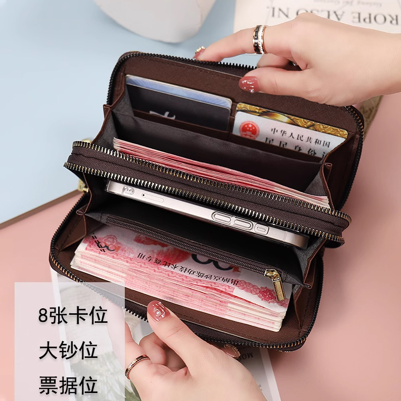 长款 真皮拉链钱包多功能大容量零钱包手机包耳机现金证件收纳包