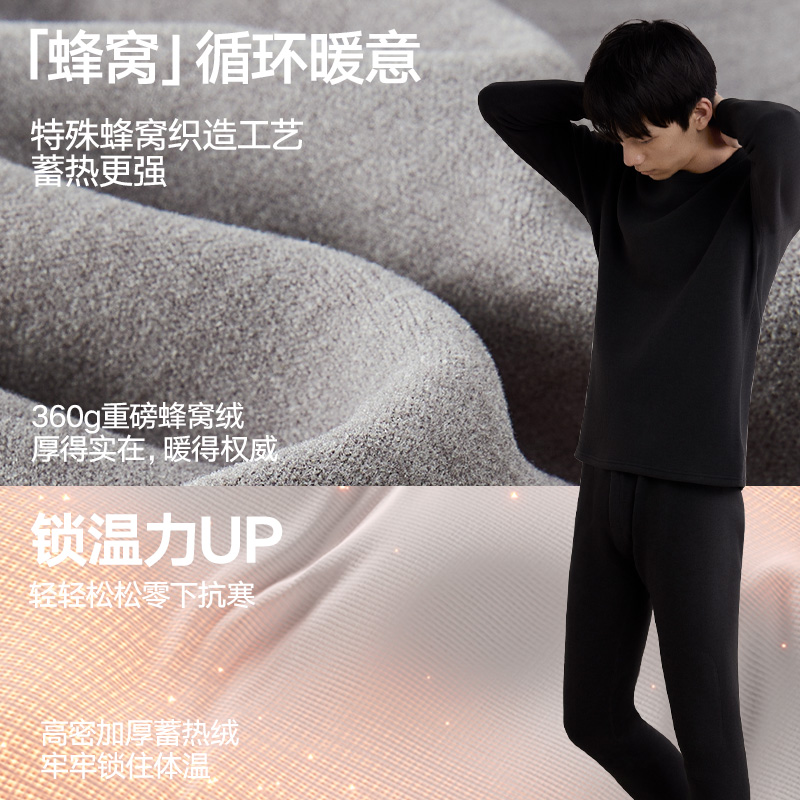 女发热秋衣秋裤 海澜之家冬季 加绒加厚25年新款 保暖内衣套装 男士