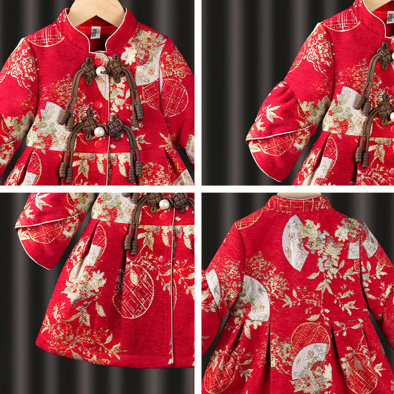 周岁礼服裙儿童旗袍新年服 女童婴儿抓周唐装 女宝宝拜年服中式 冬季