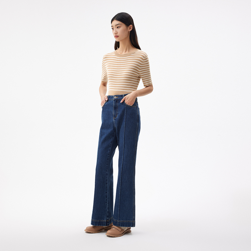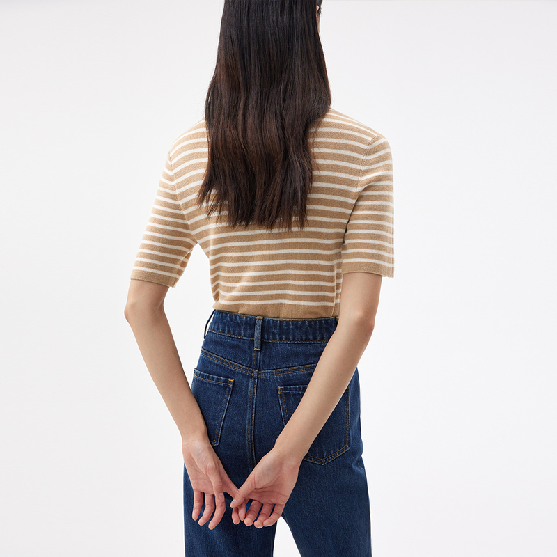 播奥莱 显瘦毛衫 播商场同款 女春秋修身 BDQ3SD0457 条纹针织衫