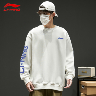 宽松针织运动上衣简约男装 加绒圆领套头衫 卫衣男秋季 安踏休闲长袖