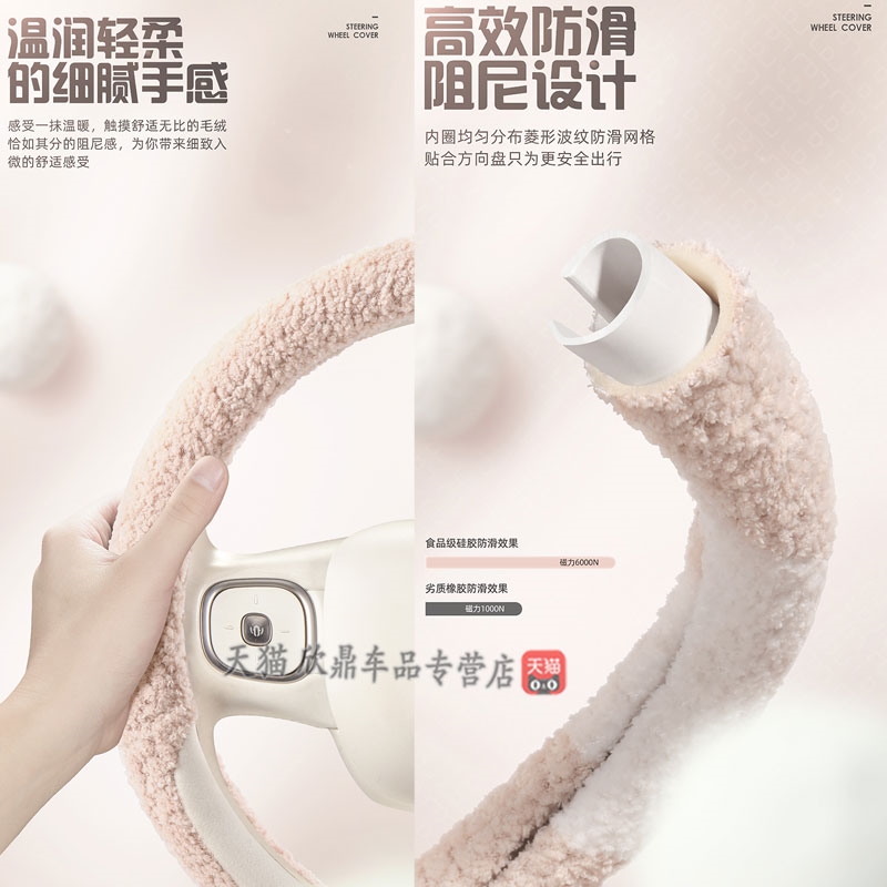2025新款 短毛绒保护套女士防滑可爱卡通汽车把套 汽车方向盘套冬季