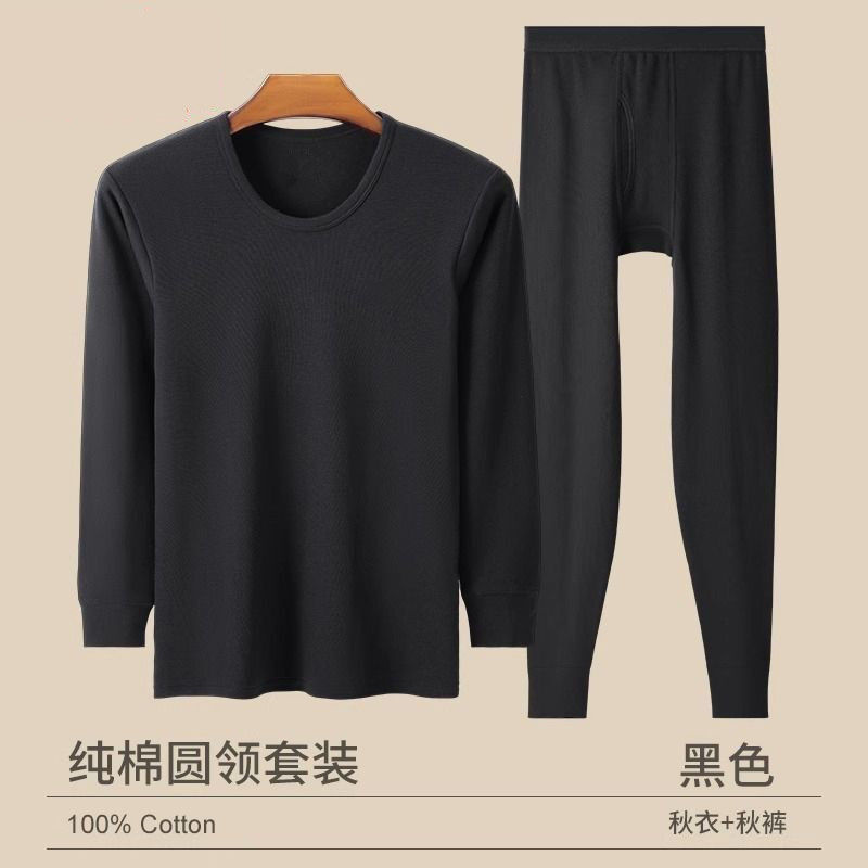 睡衣秋衣秋裤 冬薄款 男 结婚纯棉低领保暖内衣女套装 溜淘居家情侣款