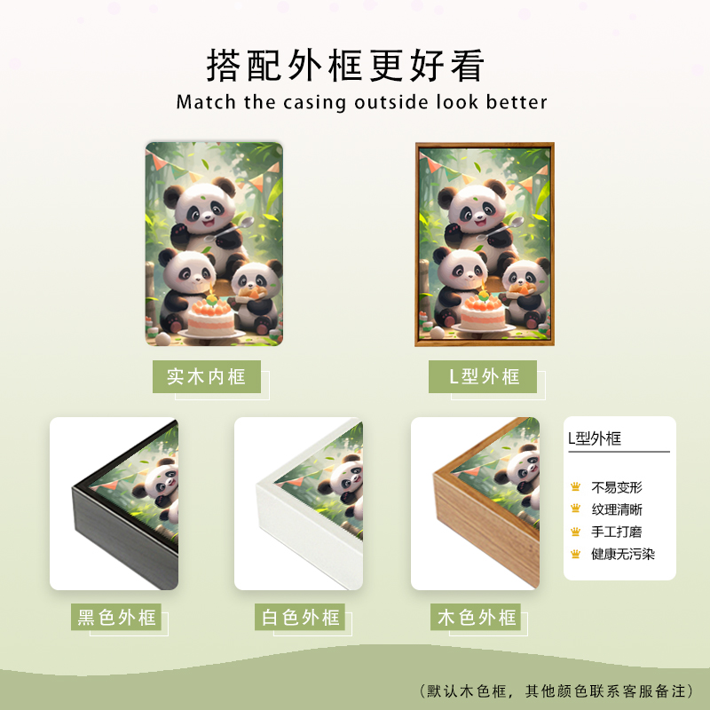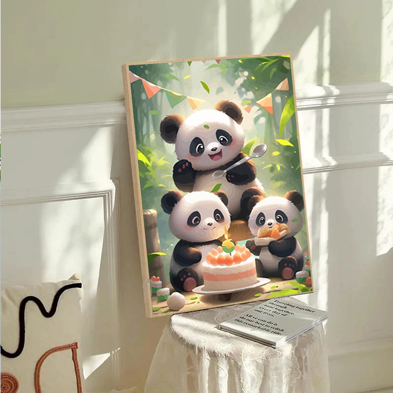 熊猫花花一家人DIY数字油画儿童手工绘填充涂色丙烯油彩装 饰挂画