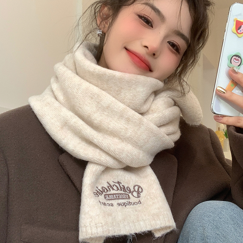 羊毛围巾冬季 情侣韩系百搭围脖秋冬高级感氛围白色绒 女生2025新款