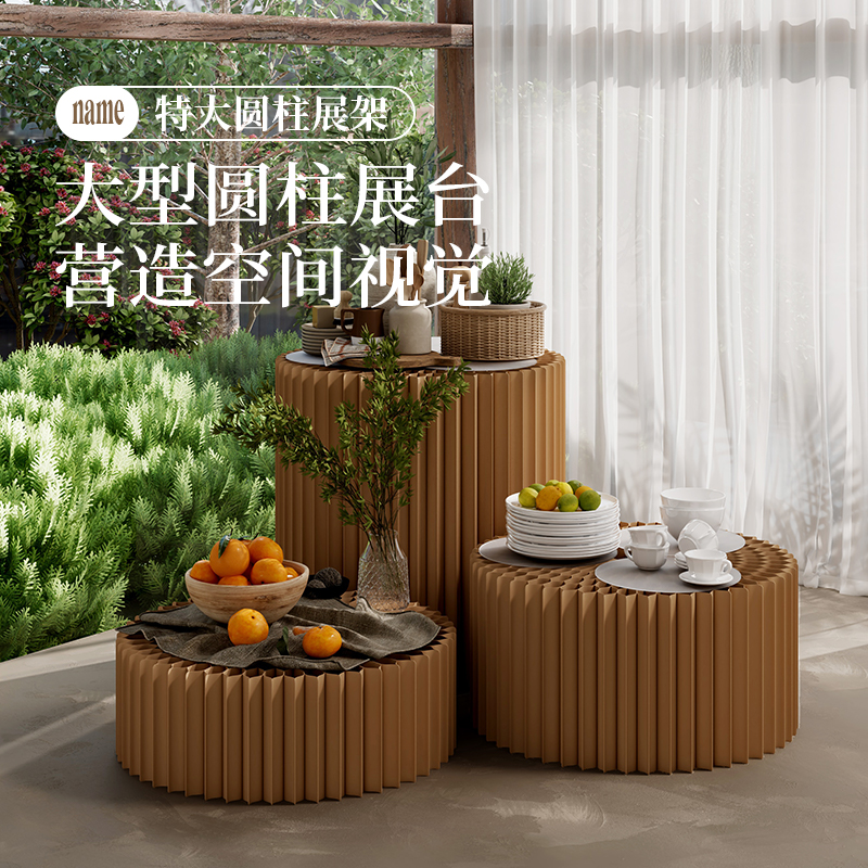 十八纸圆柱展架展示台橱窗装 饰台中岛落地流水 饰架折叠陈列圆形装