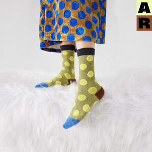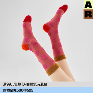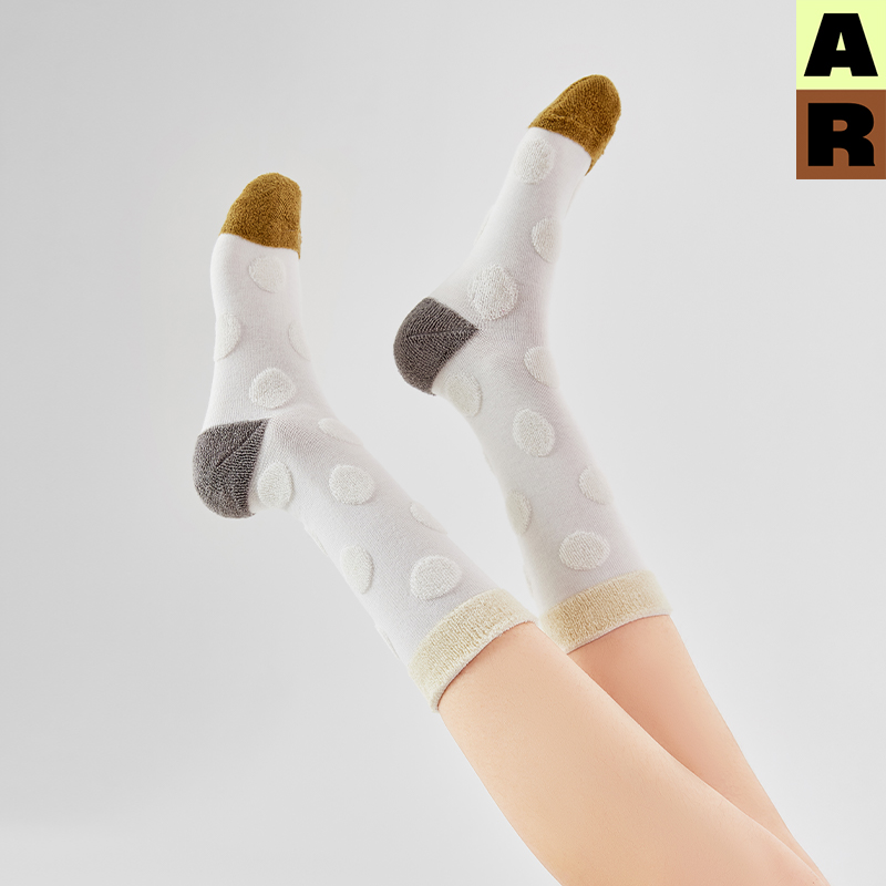 AR波点反毛圈中筒袜2025新款 女士显瘦地板袜ins潮r线AlmondRocks