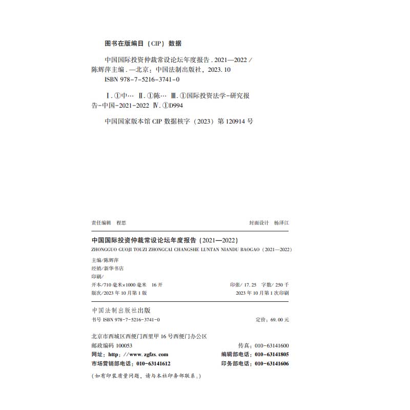 2023新书 中国法制出版 中国国际投资仲裁常设论坛年度报告2021 陈辉萍 社9787521637410 2022 正版