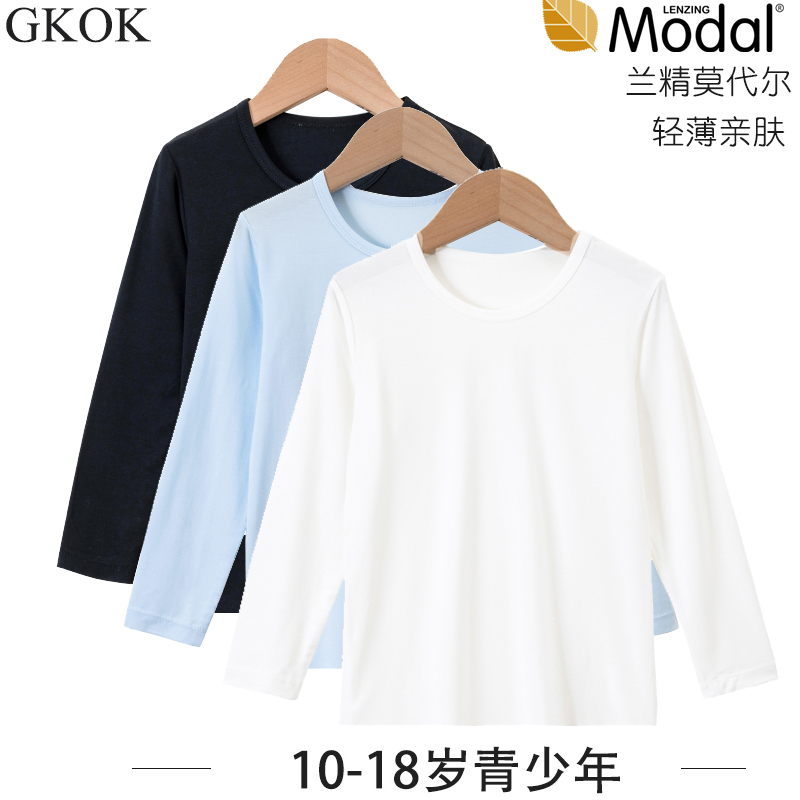 青少年莫代尔薄秋衣男大童黑白色初高中学生圆领打底T恤长袖 上衣