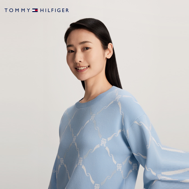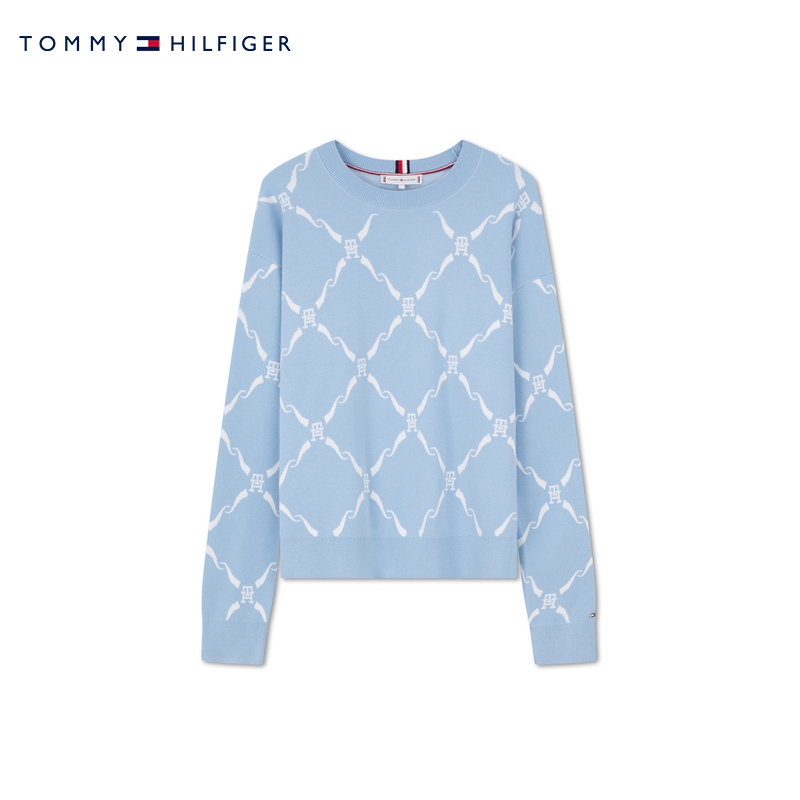 菱格宽松圆领打底毛衣针织衫 Tommy女王节秋冬女装 温柔力系列