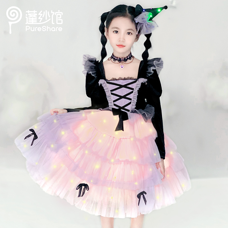 复古收腰显瘦A字中长裙子 新款 紫涵蕾丝花边圆领长袖 连衣裙女秋季