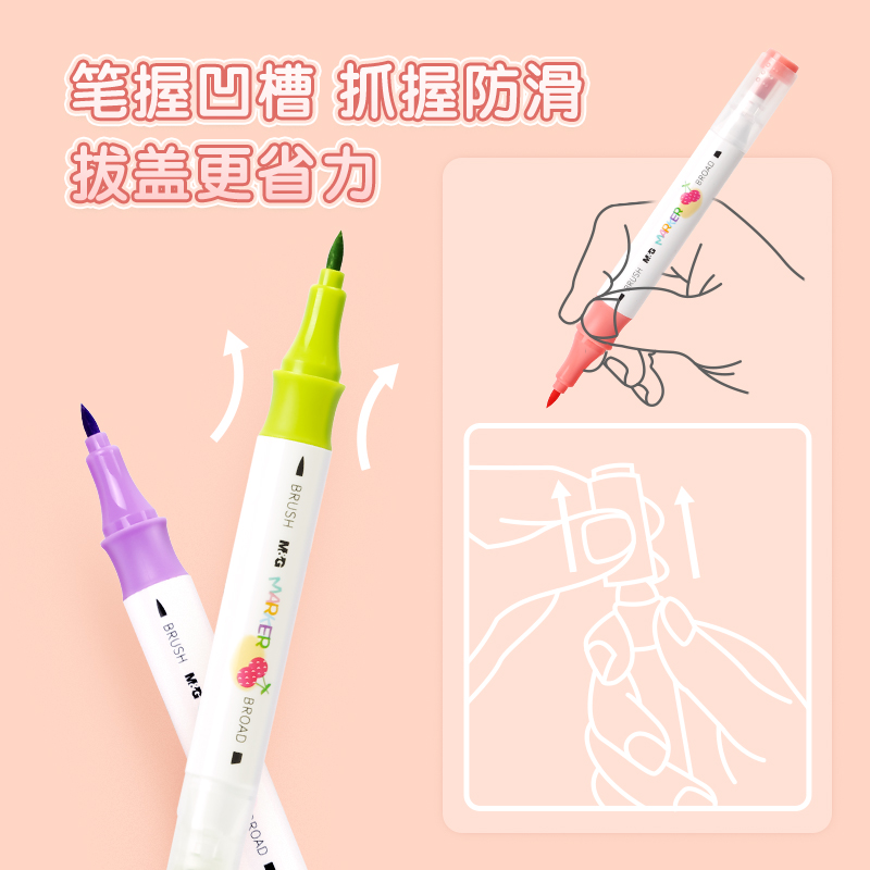 48色速干儿童学生初学者美术专用涂鸦画画幼儿园漫画软头彩笔 晨光食品级马克笔水性双头水彩笔盒装