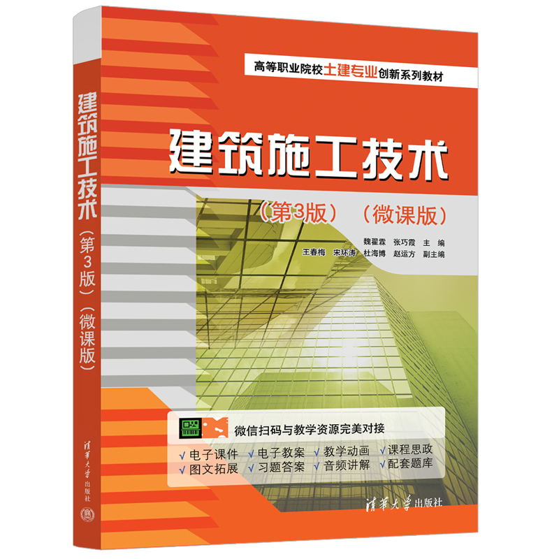 清华大学出版 建筑施工—技术—高等职业教育—教材 建筑施工技术 魏翟霖 张巧霞 微课版 新书 第3版 社 王春梅等 官方正版