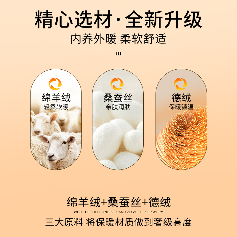 上衣磨毛 加绒加厚羊毛蚕丝秋衣秋裤 德绒保暖内衣女士套装 秋冬季
