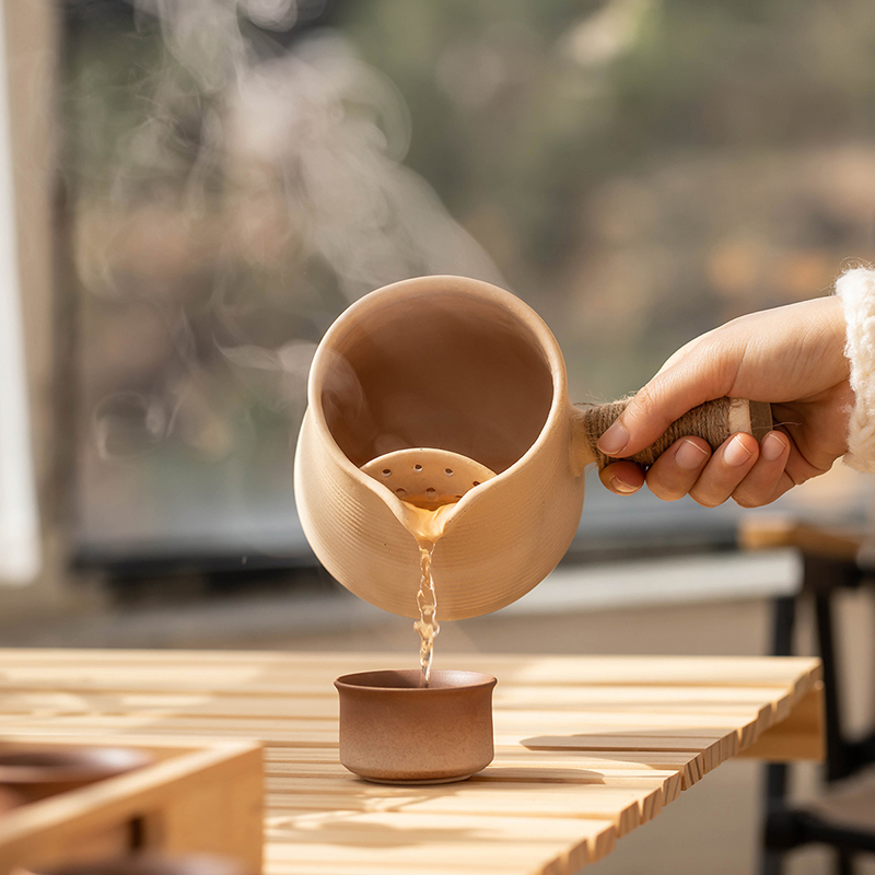 懒人茶具套装 家用喝茶防烫泡茶壶陶瓷功夫茶杯石磨半自动冲茶神器