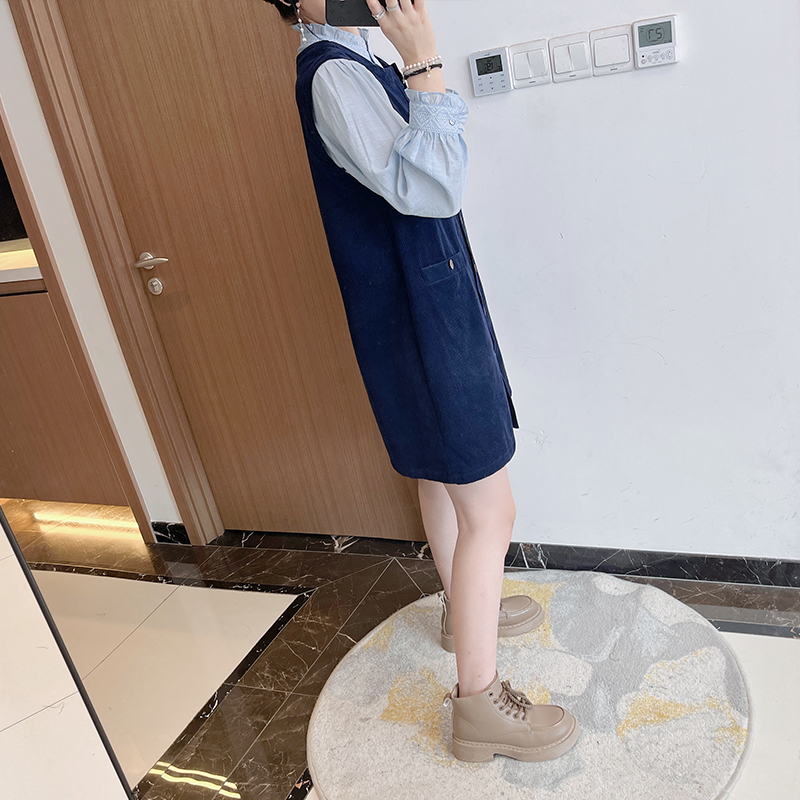 无袖 新款 花苞短裙 女2025秋冬季 阔色深灰色格纹背心连衣裙叠穿短款