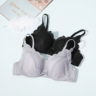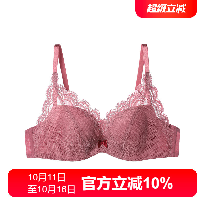 素肌良品小蔷薇无钢圈薄款 性感小胸聚拢文胸秋 透气内衣女蕾丝套装