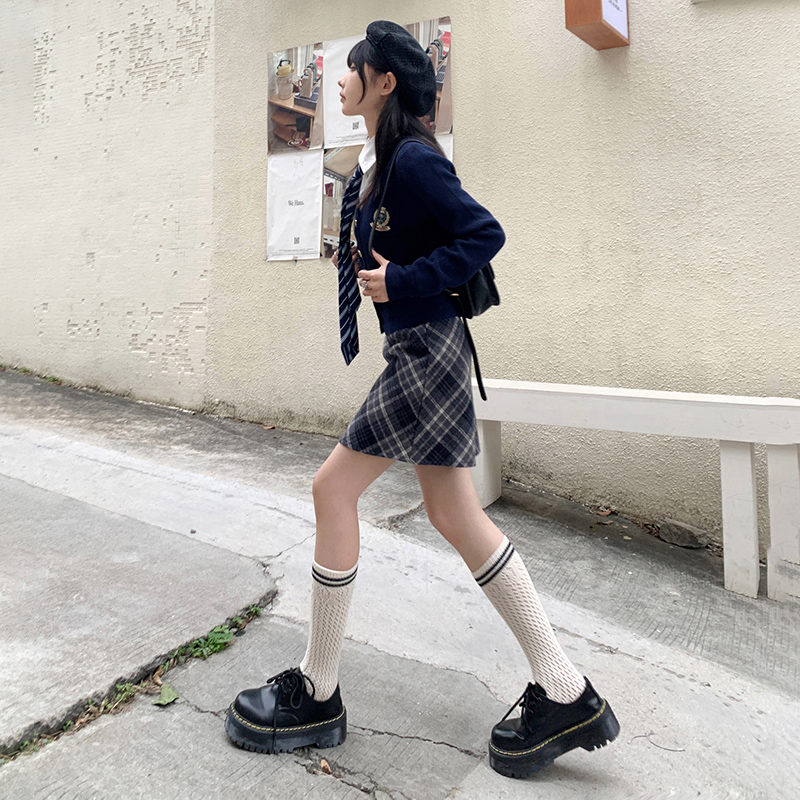 百褶裙格子半身裙女夏款 高腰a字显瘦春秋黑色小个子学院风短裙裤