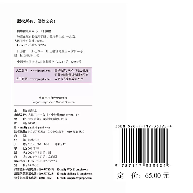 人民卫生出版 肺高血压自我管理手册 心肺血管疾病肺高血压科普书 疾病基本知识日常生活管理注意事项讲解 社9787117333924 戴海龙