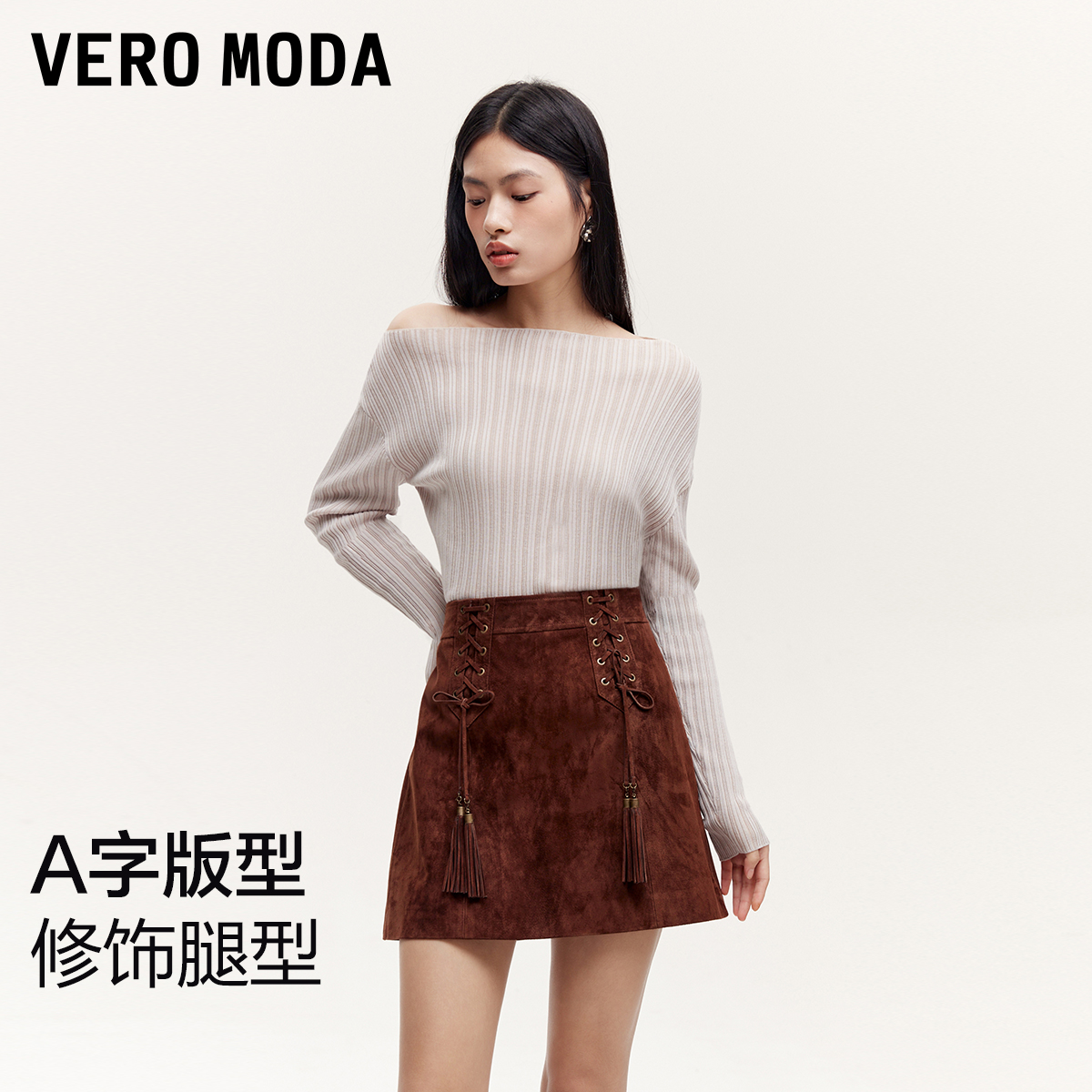 ONLY2025秋季 挺括牛仔面料设计高腰A字百褶裙长裙半身裙女 新款