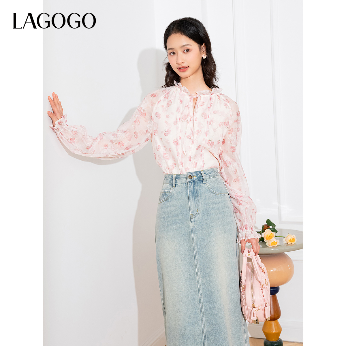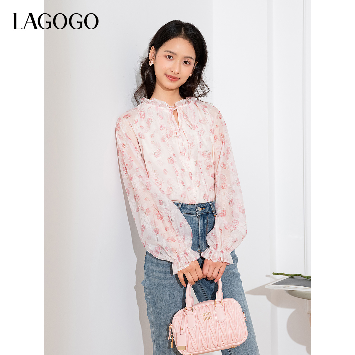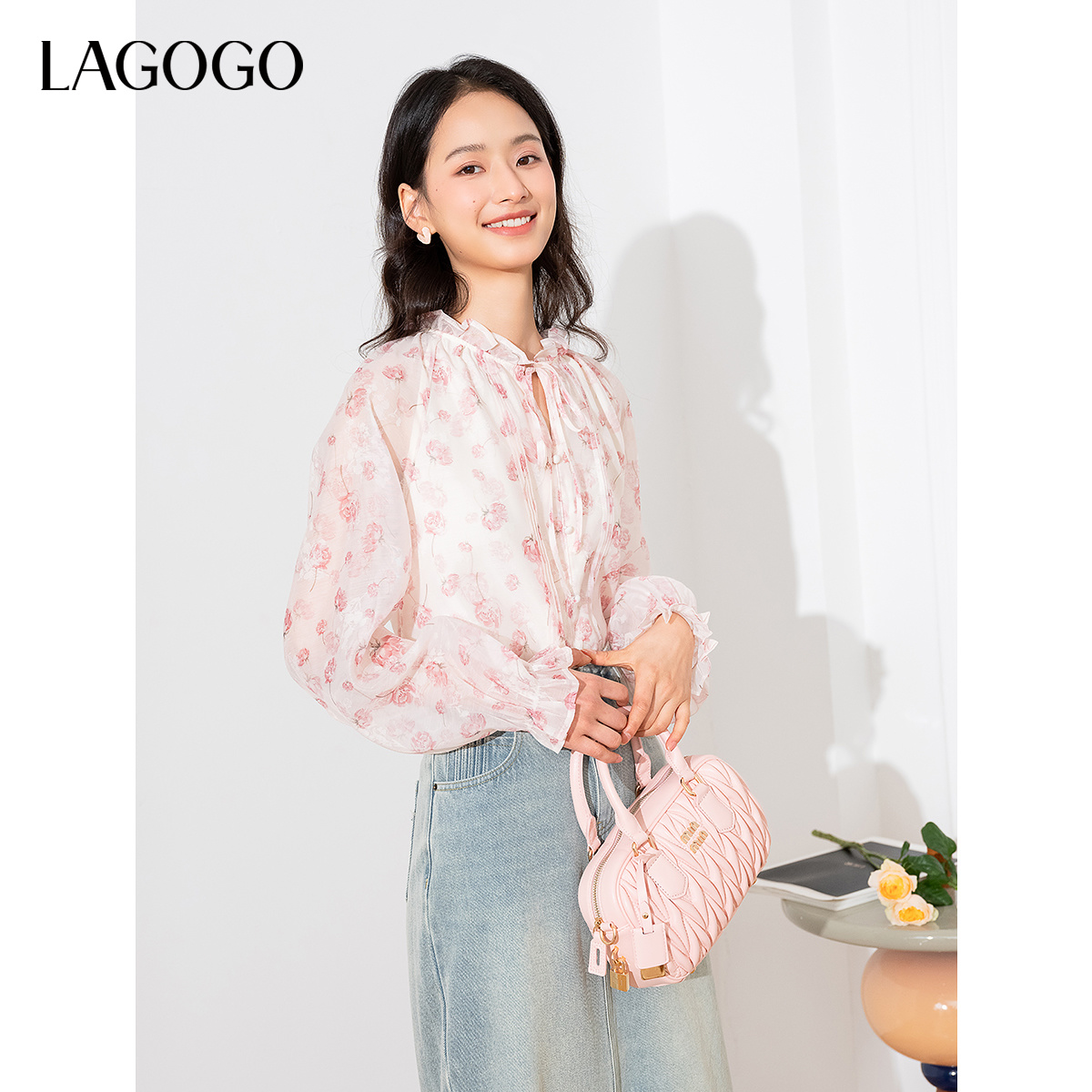 春秋新款 女士长袖 设计感气质衬衣上衣 子衬衫 betu百图复古英伦风格