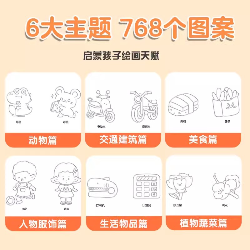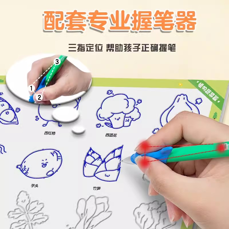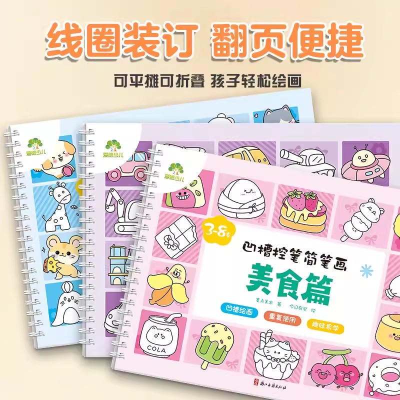 爱德少儿3 8岁凹槽控笔简笔画动物人物植物篇蔬菜篇幼儿园绘画本控笔训练字帖画画本素描临摹画册入门前班简笔画线描绘画描绘本