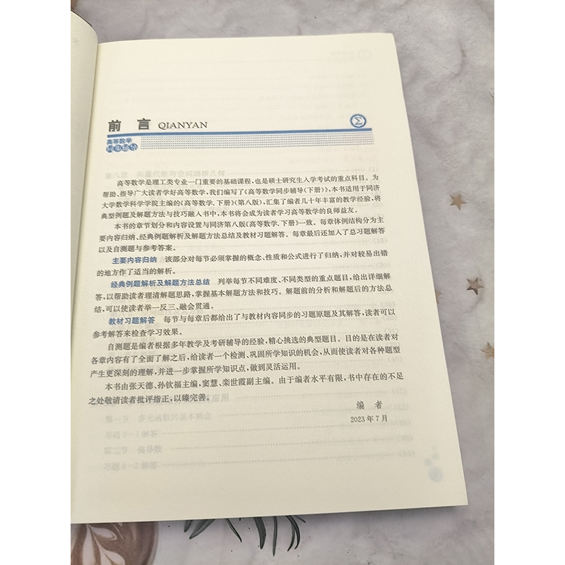例题解析及解题方法总结及教材习题解答 结构分为主要内容归纳 归纳该部分对每节掌握 概念 高等数学同步辅导 性质和公式 下册