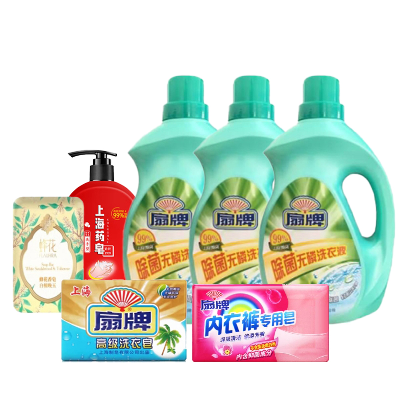 扇牌清洁套装 洗衣液洗手液洗衣皂液体香皂内衣皂有效清洁除菌肥皂
