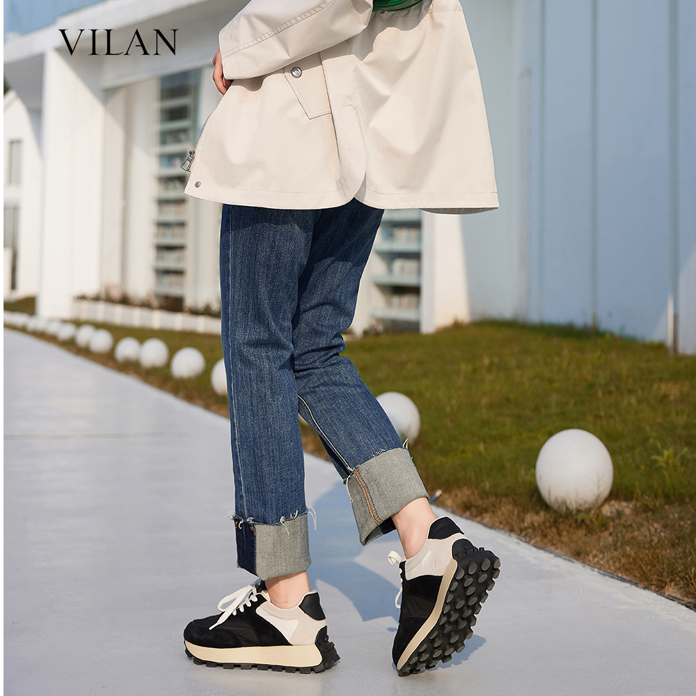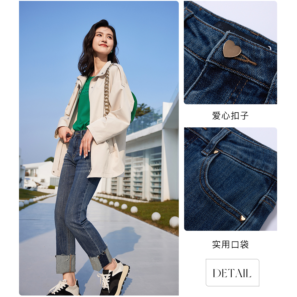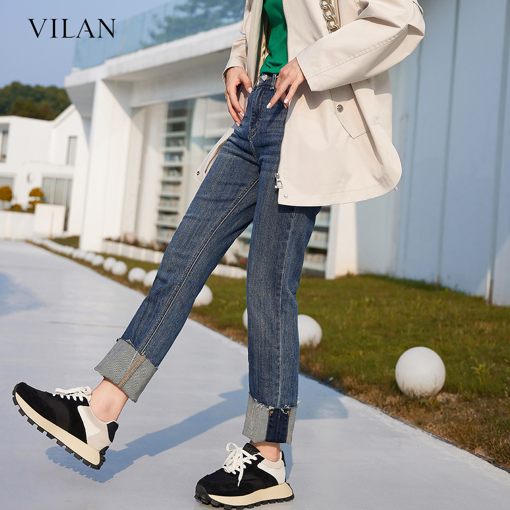 慧兰法式 复古百搭时髦翻边直筒裤 高腰牛仔裤 新款 女2025秋季 vilan