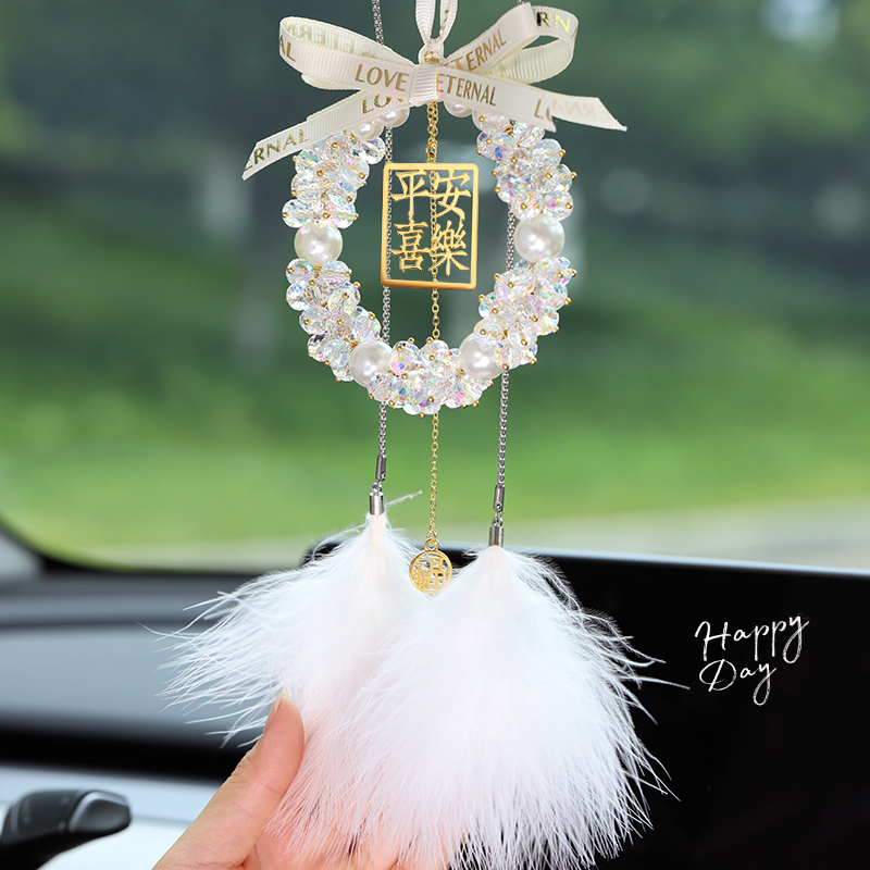 2025新款 饰车挂吊坠饰品 汽车挂件高级感平安喜乐后视镜珍珠水晶装