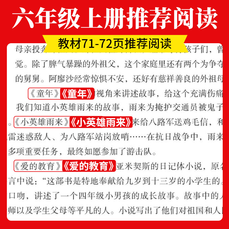 6年级课外书阅读 教育六年级必读课外书小英雄雨来管桦著快乐读书吧六上童年高尔基原著正版 童年六年级上册必读 课外书爱