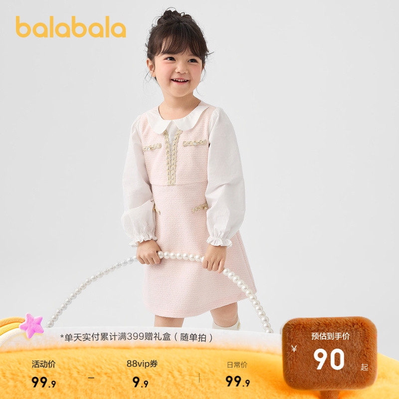 菲梦伊原创钉珠小香风连衣裙女秋季 名媛千金感优雅气质假两件裙子