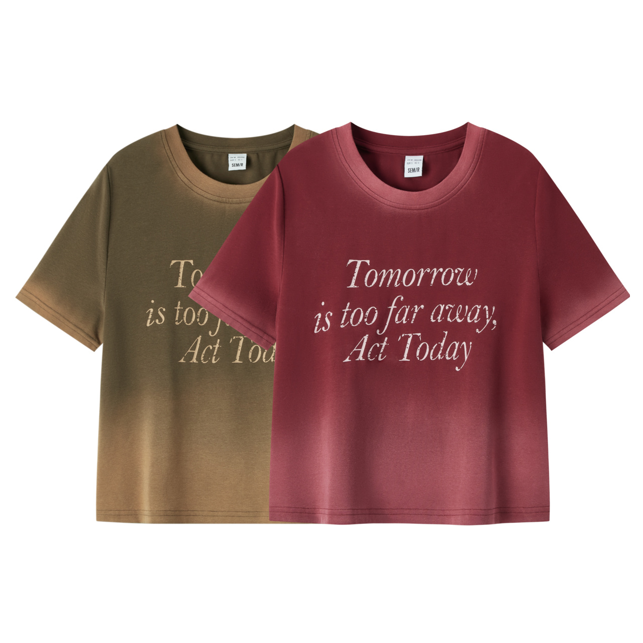T恤女短款 森马短袖 字母夏季 2024新款 上衣复古 渐变修身 商场同款