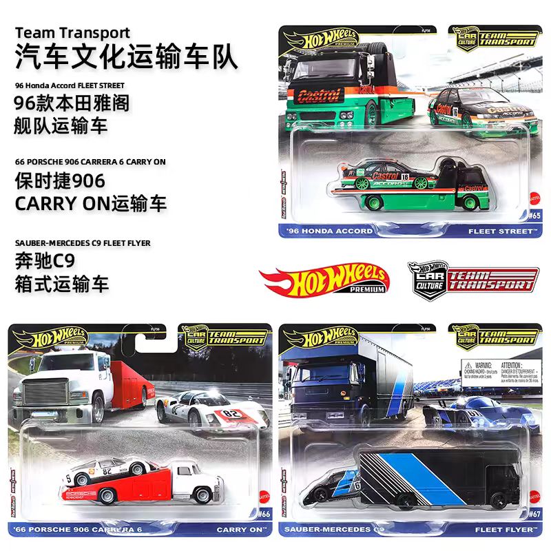 风火轮运输车队FLF56合金车模型铁底胶胎奔驰C9保时捷男孩玩具