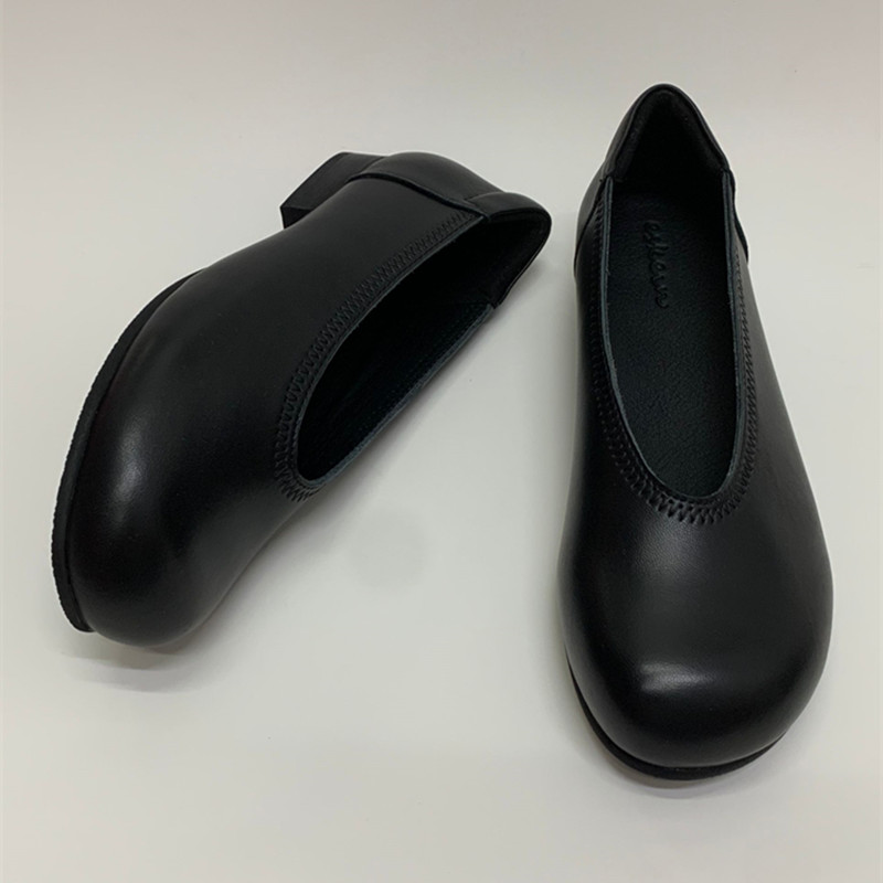 胖脚宽脚女鞋 ESKEIN法式 大码 平底方头银色宽头小皮鞋 全羊皮奶奶鞋